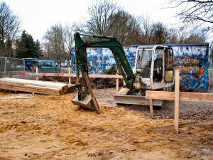 15.12.2004 Heute ist hier wieder Betrieb. Das Fundament wird heute vermessen und abgesteckt.